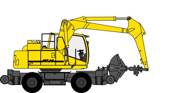 Der ATLAS 235RR Zweiwegebagger überzeugt durch hohe Maschinenverfügbarkeit und Flexibilität, die ihn zur optimalen Wahl für anspruchsvolle Aufgaben macht.