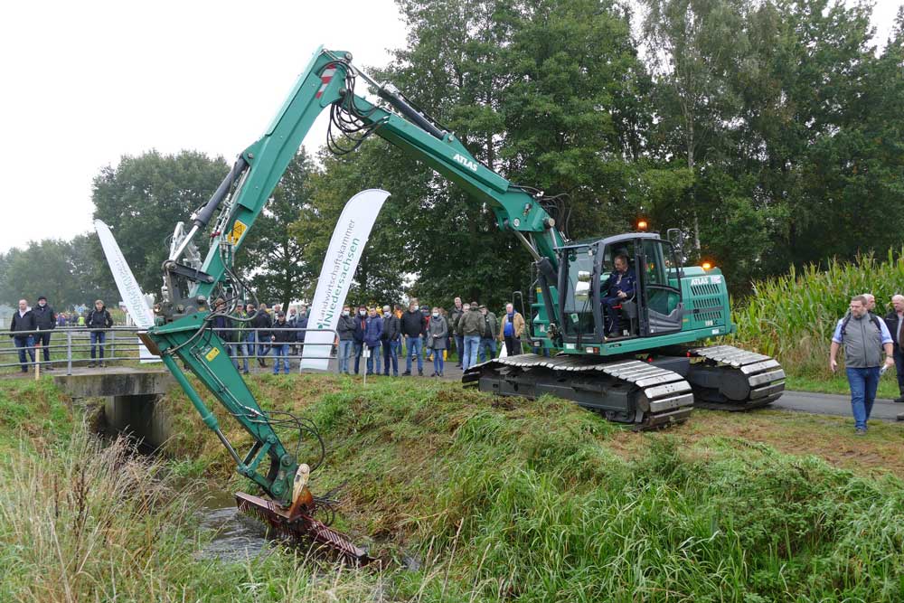 Every five years, the Lower Saxony Chamber of Agriculture organises a fair for water maintenance technology, which is held in Hausstette, not far from Osnabrück. The focus is on practical demonstrations of technology for watercourse maintenance. This means maintenance measures on water bodies such as mowing and removing weed growth, desilting or removing sedimentation, etc. Only trade visitors come to this fair. Among others, ATLAS showed two excavators that are specially equipped for such operations. Among others, ATLAS showed two excavators that are specially equipped for such operations.