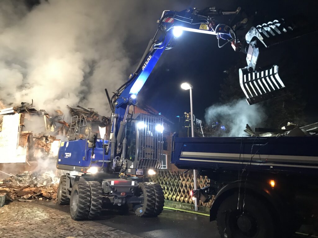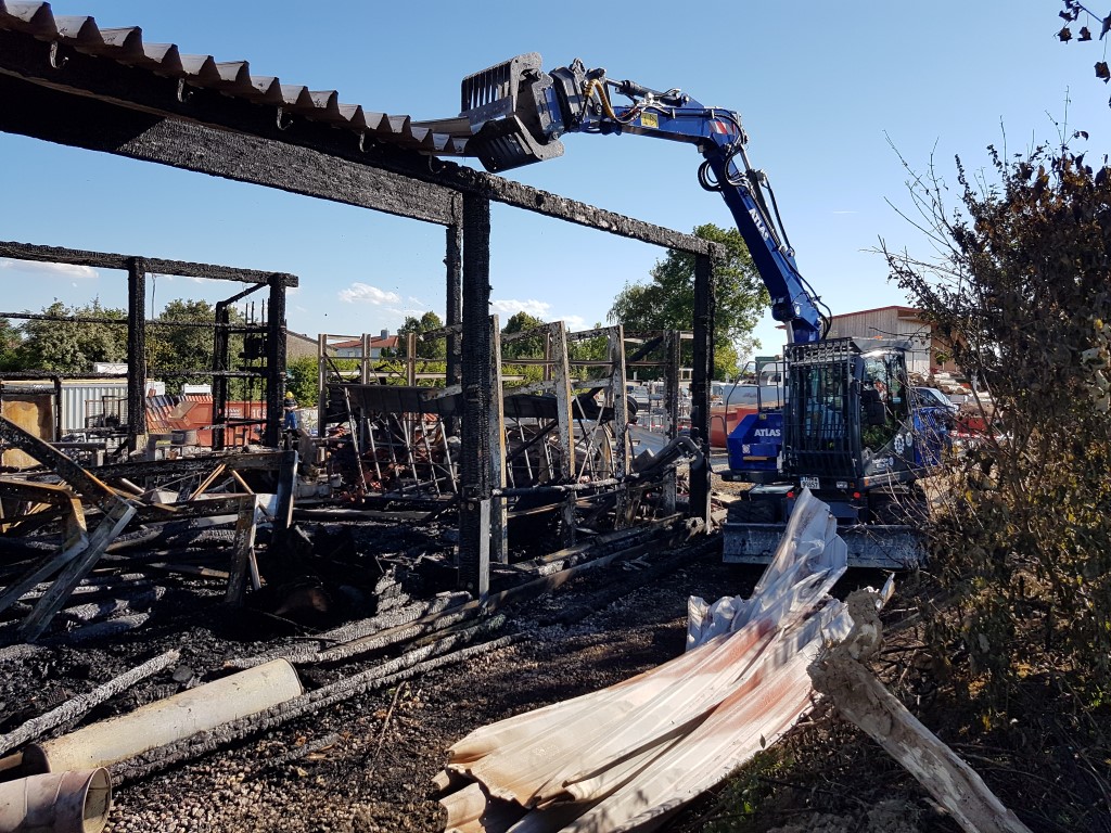 Around 650 firefighters were in action to extinguish a massive fire at a recycling plant in Diez, near Limburg. Several hundred members of the THW from eight local sections and THW experts of the specialist unit “clearing” supported them. To be able to control the flames, machineries used for clearing pulled the burning material apart. The 15 t ATLAS 140W blue mobile excavator was in action here. It is equipped with a 4 l displacement and a 90 kW/121hp strong engine. This engine has sufficient power to pull apart heavy bales of paper, parts of the hall etc. The working movements are especially quick. Most importantly, the ATLAS is agile and quick with a crawling speed of 1km/h and the option of going up to 20 km/h. The working movements are especially quick. This allows the upper carriage to rotate completely 360° up to nine times per minute. With an emission level of Tier V and an AdBlue tank, the engine is environmentally friendly and fuel-efficient. There is a choice of three operating modes to ensure that, in accordance with the job, the optimal power can be supplied.